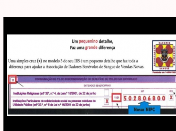 É pessoa colectiva de utilidade pública , NIF-502 806 800 , rege-se pelas disposições dos seus estatutos e, nos casos omissos, pelas leis Portuguesas aplicáveis, tem Sede na Pct. dos Dadores Benévolos de Sangue de Vendas Novas Lt,32- Freguesia e Concelho de Vendas Novas, podendo no entanto ser transferida para outro local dentro do mesmo Concelho.